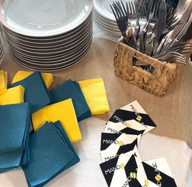 Ce sont des buffets avec des nappes en tissus, de la vaisselle issue du réemploi, pour des tables pérennes et non polluantes